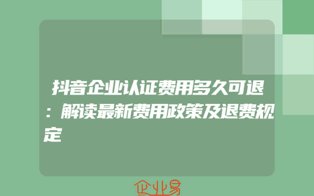 - 抖音企业认证费用多久可退:解读最新费用政策及退费规定