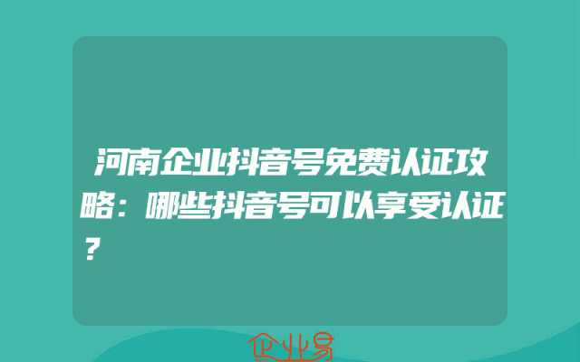 - 河南企业抖音号免费认证攻略:哪些抖音号可以享受认证?