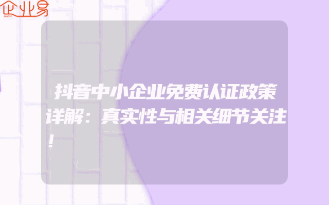 - 抖音中小企业免费认证政策详解:真实性与相关细节关注!