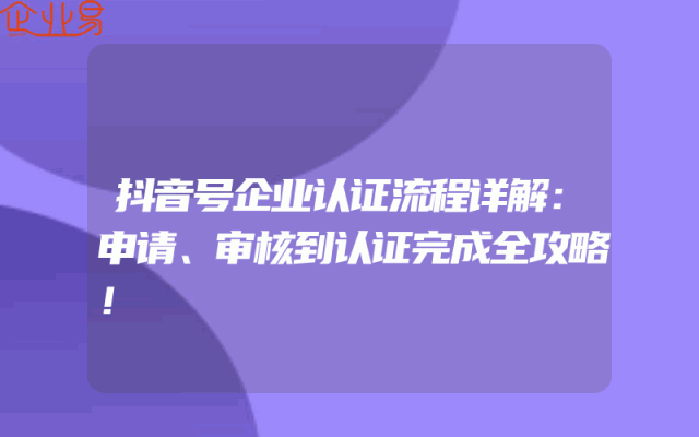 - 抖音企业认证攻略:快速完成认证,打造品牌公信力公涵。