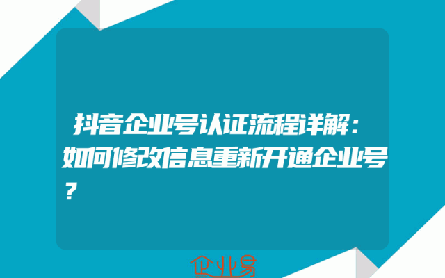 - 抖音企业号认证流程详解:如何修改信息重新开通企业号?