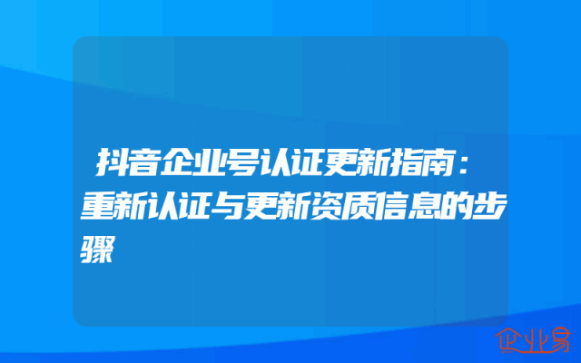 - 抖音企业号认证更新指南:重新认证与更新资质信息的步骤