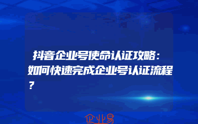 - 抖音企业号使命认证攻略:如何快速完成企业号认证流程?