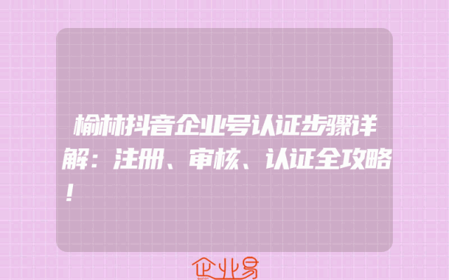 - 榆林抖音企业号认证步骤详解:注册、审核、认证全攻略!