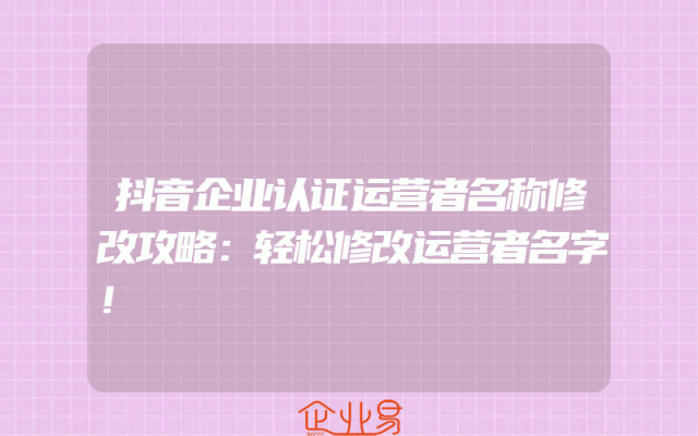 - 抖音企业认证运营者名称修改攻略:轻松修改运营者名字!
