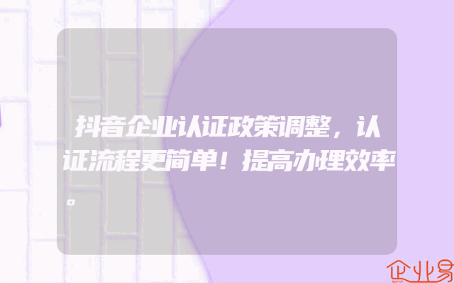 - 抖音企业认证政策调整,认证流程更简单!提高办理效率。