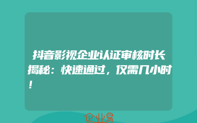 - 抖音影视企业认证审核时长揭秘:快速通过,仅需几小时!