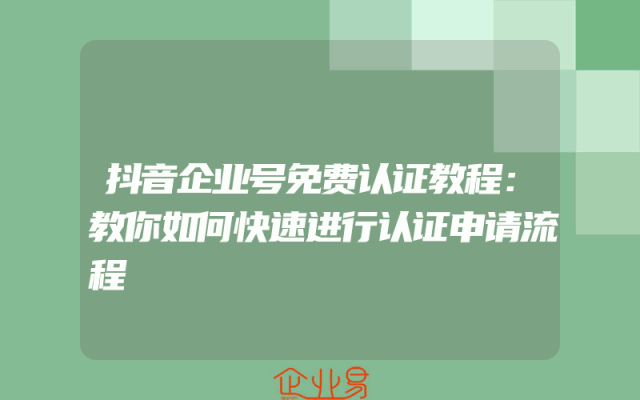 - 抖音企业号免费认证教程:教你如何快速进行认证申请流程