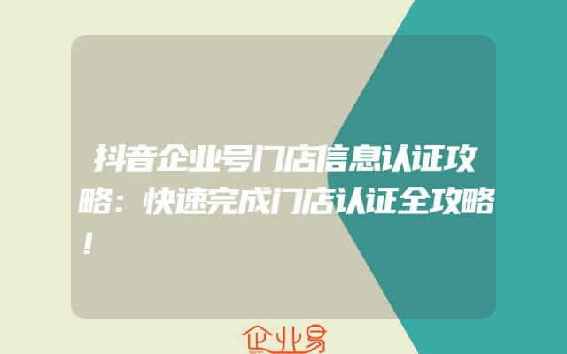 - 抖音企业号门店信息认证攻略:快速完成门店认证全攻略!