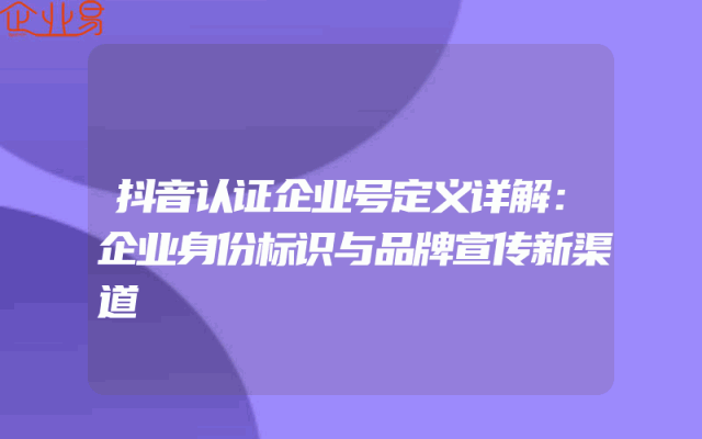 - 抖音认证企业号定义详解:企业身份标识与品牌宣传新渠道