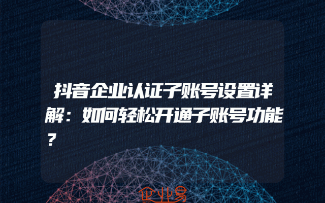 - 抖音企业认证子账号设置详解:如何轻松开通子账号功能?