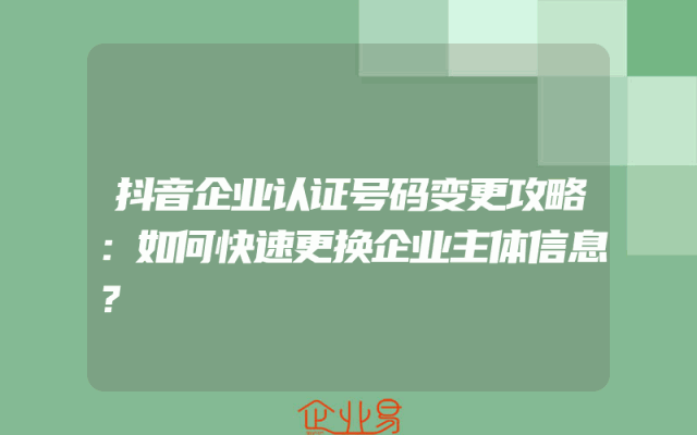- 抖音企业认证号码变更攻略:如何快速更换企业主体信息?