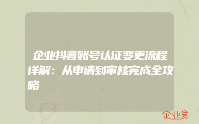 - 企业抖音账号认证变更流程详解:从申请到审核完成全攻略