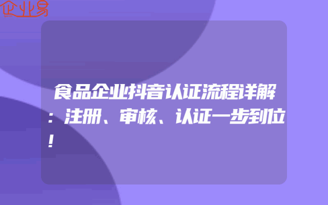 - 食品企业抖音认证流程详解:注册、审核、认证一步到位!