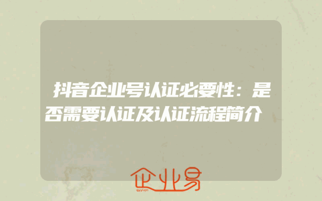 - 抖音企业号认证必要性:是否需要认证及认证流程简介