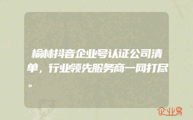 - 榆林抖音企业号认证公司清单,行业领先服务商一网打尽。