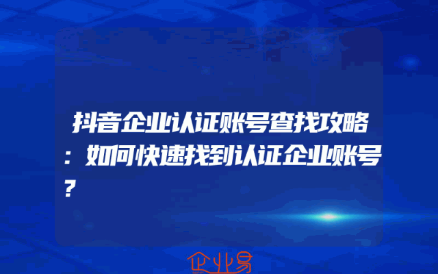 - 抖音企业认证账号查找攻略:如何快速找到认证企业账号?