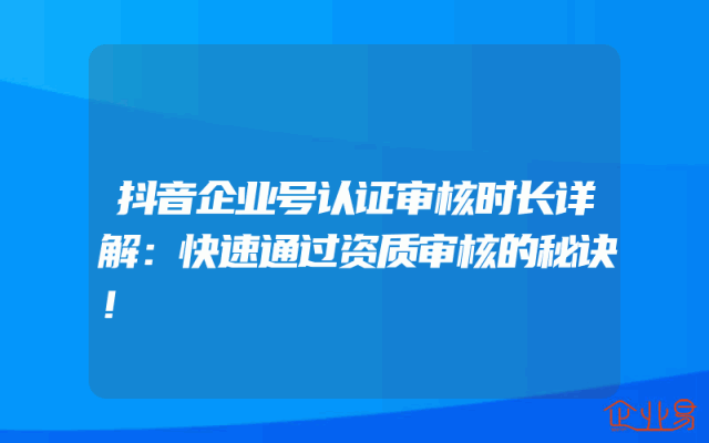 - 抖音企业号认证审核时长详解:快速通过资质审核的秘诀!