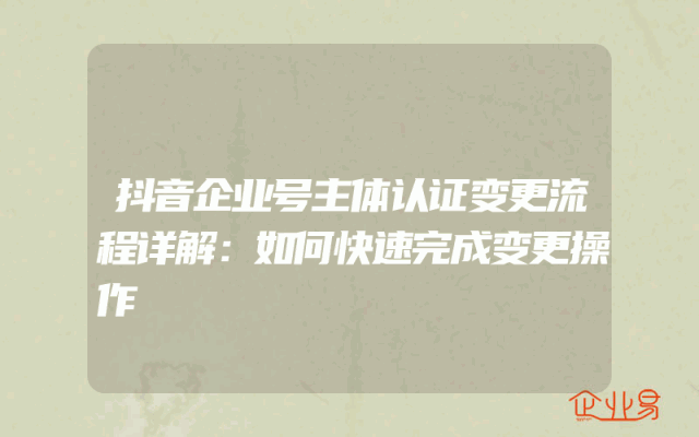 - 抖音企业号主体认证变更流程详解:如何快速完成变更操作