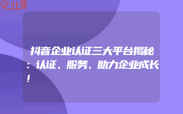 - 抖音企业认证三大平台揭秘:认证、服务、助力企业成长!
