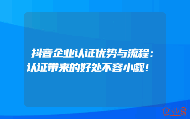 - 抖音企业认证优势与流程:认证带来的好处不容小觑!