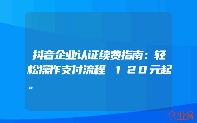 - 抖音企业认证续费指南:轻松操作支付流程 120元起。