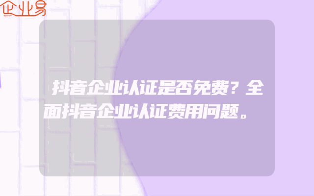 - 抖音企业认证是否免费?全面抖音企业认证费用问题。