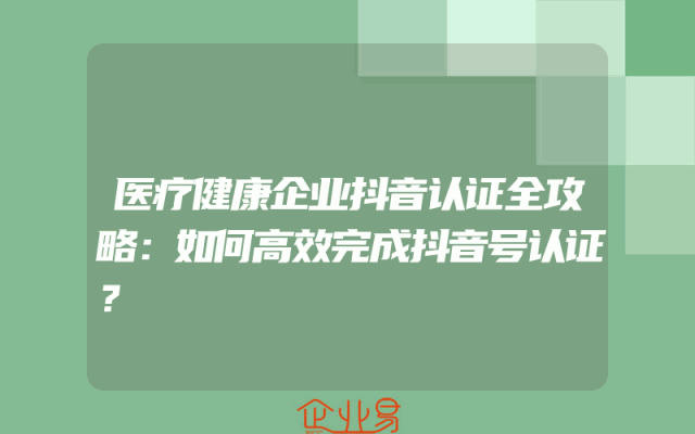 - 医疗健康企业抖音认证全攻略:如何高效完成抖音号认证?
