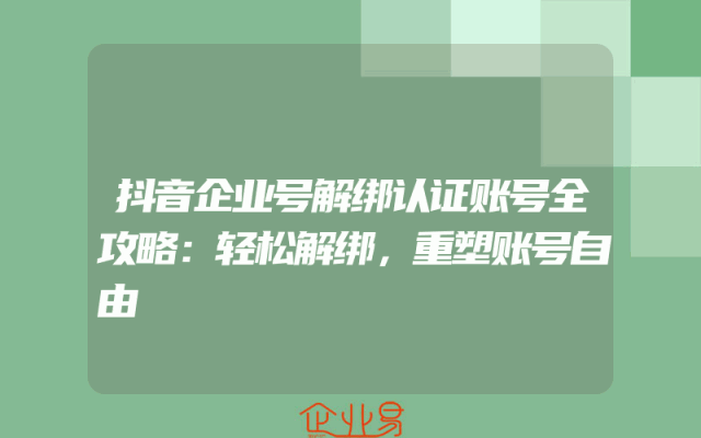 - 抖音企业号解绑认证账号全攻略:轻松解绑,重塑账号自由
