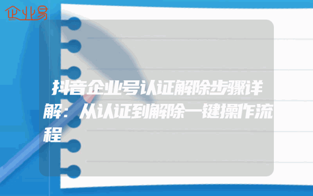 - 抖音企业号认证解除步骤详解:从认证到解除一键操作流程