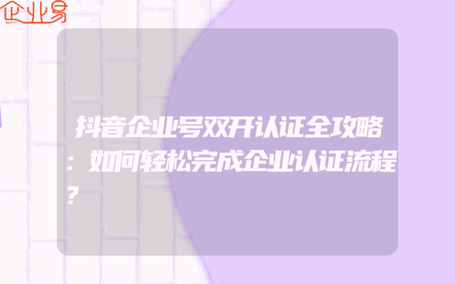 - 抖音企业号双开认证全攻略:如何轻松完成企业认证流程?一、了解抖音企业号双开认证抖音企业号双开认证是指在一个抖音平台上同时运营两个企业账号的认证过程。这种认证方式有助于企业更好地展示自身品牌和产品,扩大影响力。在进行认证之前,需要明确了解相关
