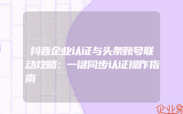 - 抖音企业认证与头条账号联动攻略:一键同步认证操作指南