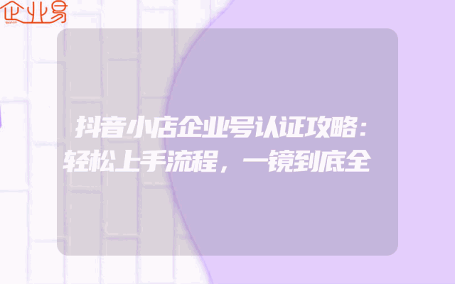 - 抖音小店企业号认证攻略:轻松上手流程,一镜到底全