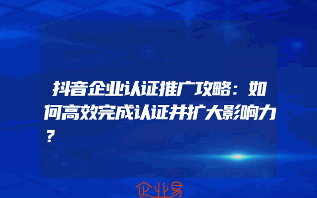 - 抖音企业认证推广攻略:如何高效完成认证并扩大影响力?