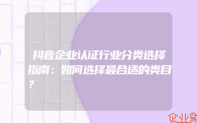 - 抖音企业认证行业分类选择指南:如何选择最合适的类目?