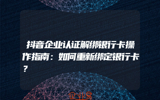 - 抖音企业认证解绑银行卡操作指南:如何重新绑定银行卡?