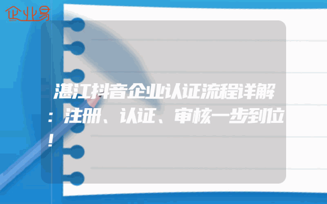 - 湛江抖音企业认证流程详解:注册、认证、审核一步到位!