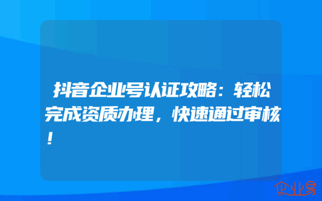 - 抖音企业号认证攻略:轻松完成资质办理,快速通过审核!