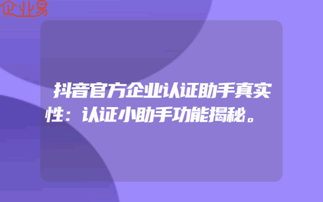 - 抖音官方企业认证助手真实性:认证小助手功能揭秘。