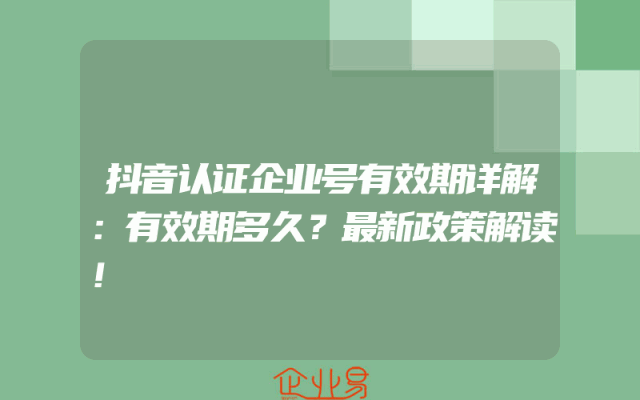 - 抖音认证企业号有效期详解:有效期多久?最新政策解读!