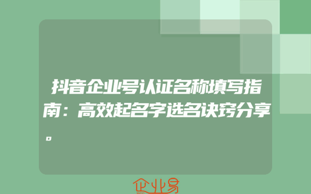 - 抖音企业号认证名称填写指南:高效起名字选名诀窍分享。