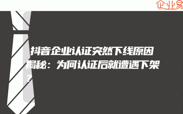 - 抖音企业认证突然下线原因揭秘:为何认证后就遭遇下架?