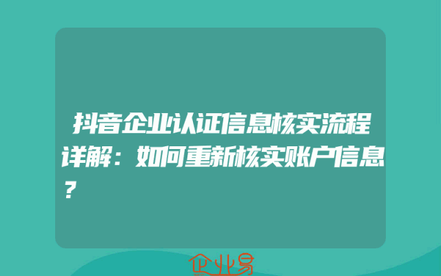 - 抖音企业认证信息核实流程详解:如何重新核实账户信息?