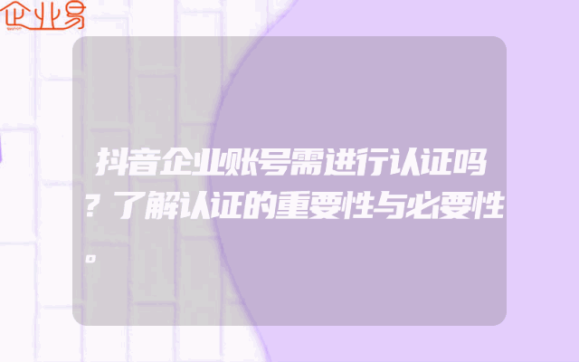 - 抖音企业账号需进行认证吗?了解认证的重要性与必要性。