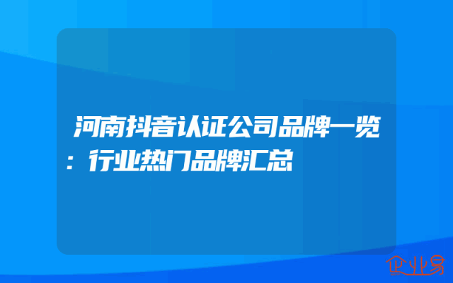- 河南抖音认证公司品牌一览:行业热门品牌汇总