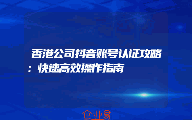 - 香港公司抖音账号认证攻略:快速高效操作指南