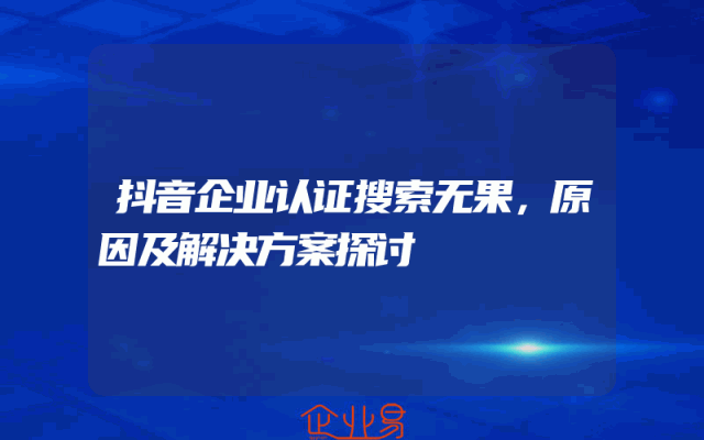 - 抖音企业认证搜索无果,原因及解决方案探讨
