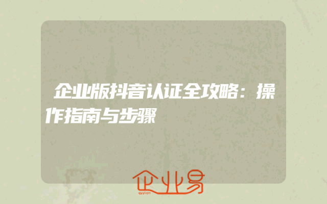 - 企业版抖音认证全攻略:操作指南与步骤