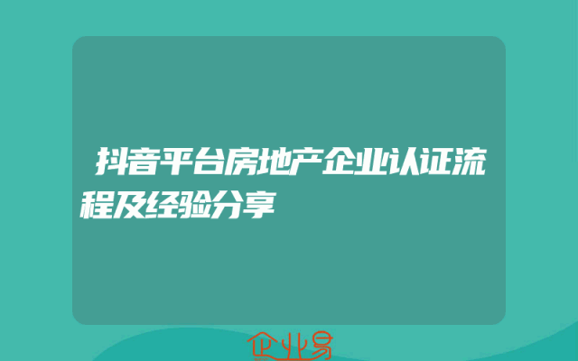 - 抖音平台房地产企业认证流程及经验分享