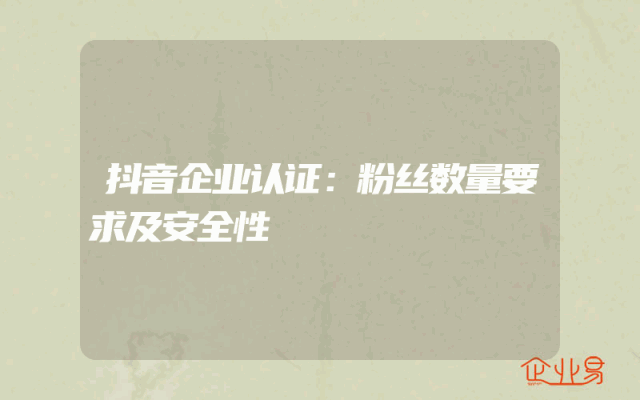 - 抖音企业认证:粉丝数量要求及安全性解析一、抖音企业认证的重要性在当今数字化时代,抖音已经成为一个广泛使用的社交媒体平台,拥有庞大的用户群体。企业认证在抖音上显得尤为重要,它不仅可以增加企业的曝光度,提高品牌影响力,还有助于提升消费者的信任度